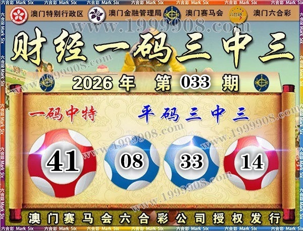 033期开奖结果:14-22-46-33-08-11 特码41
