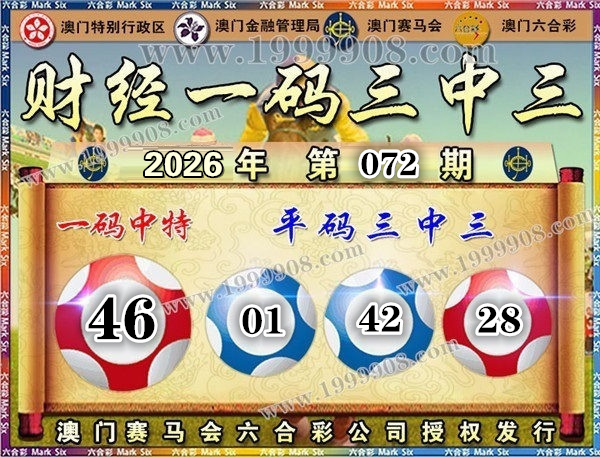 072期开奖结果:12-28-01-42-25-44 特码46