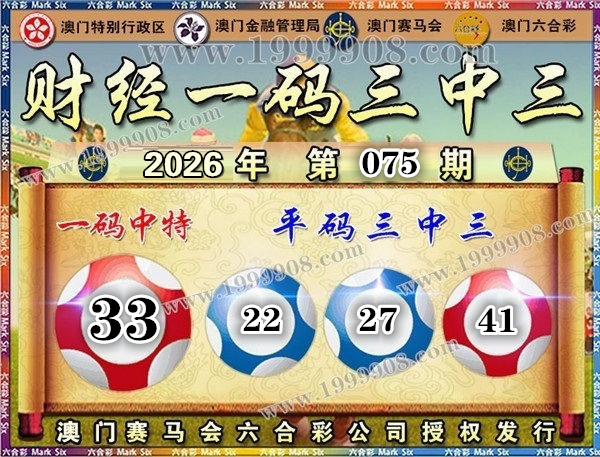 075期开奖结果:19-22-26-20-41-27 特码33